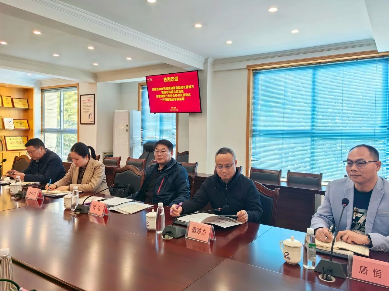 On the afternoon of March 12th, Cao Yuefang, Deputy Director of the Grain and Material Reserve Bureau of Anhui Province, Guan Xu, Second level Researcher of the Safety Storage and Technology Department, Du Dandan, Deputy Director of the Office, Wu Qizhi, Secretary General of the Anhui Grain Industry Association, Tang Heng, Director of the Grain and Oil Market News Center, and senior journalist Zhu Zhenhua visited Jiexun for research.